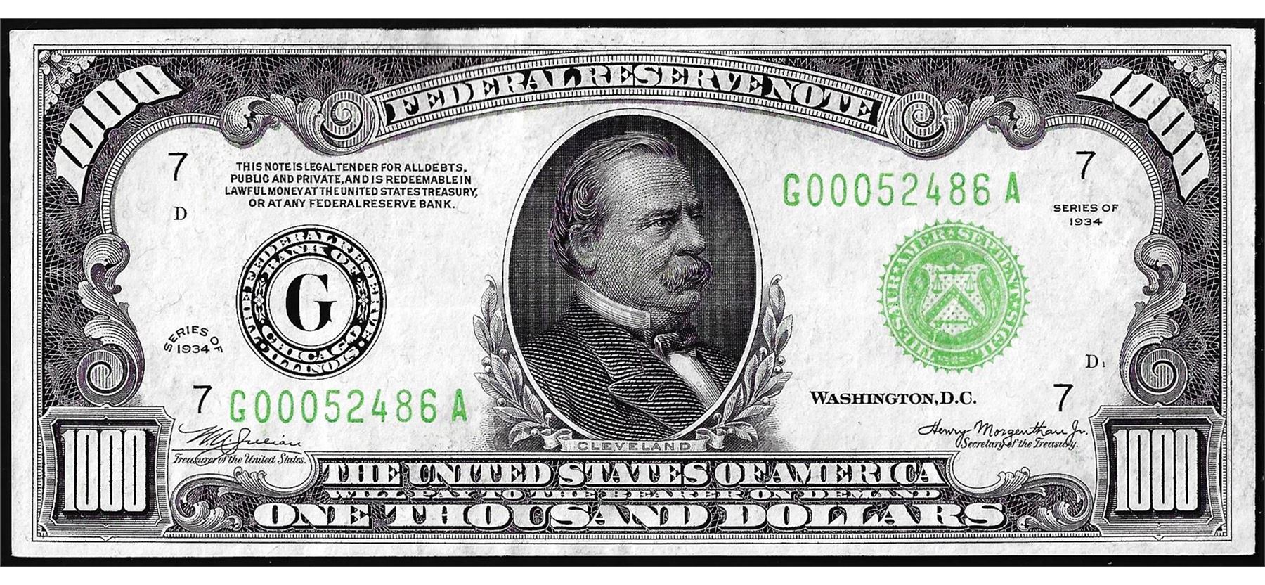 One 1934 $1,000 Federal Reserve Note Chicago.