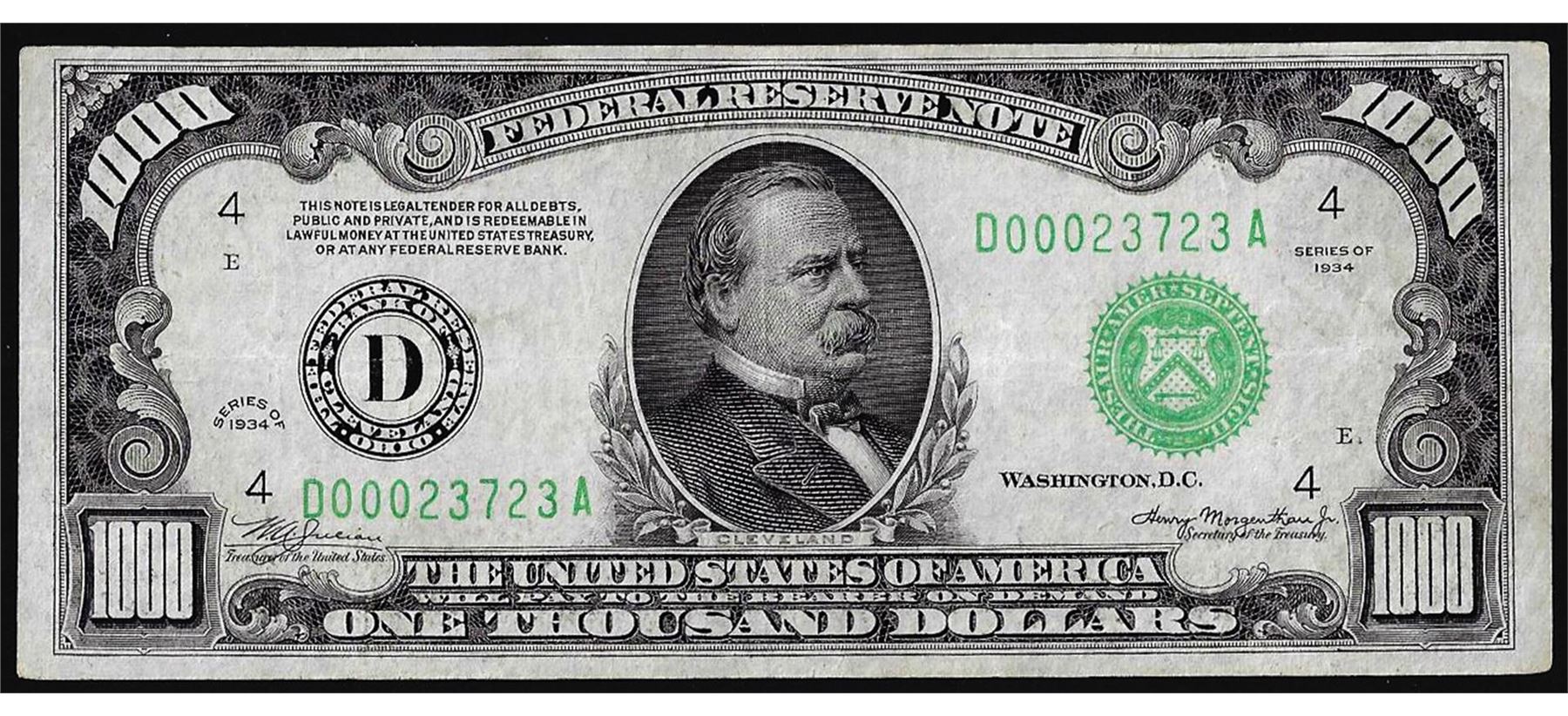 1934 $1,000 Federal Reserve Note Cleveland