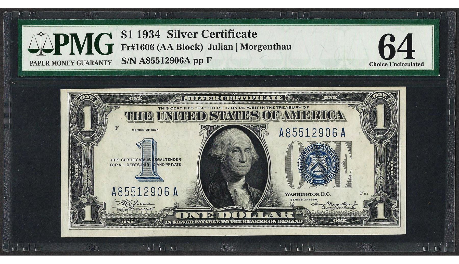 1934 $1 Funnyback Silver Certificate Note Fr.1606 PMG Choice Uncirculated 64