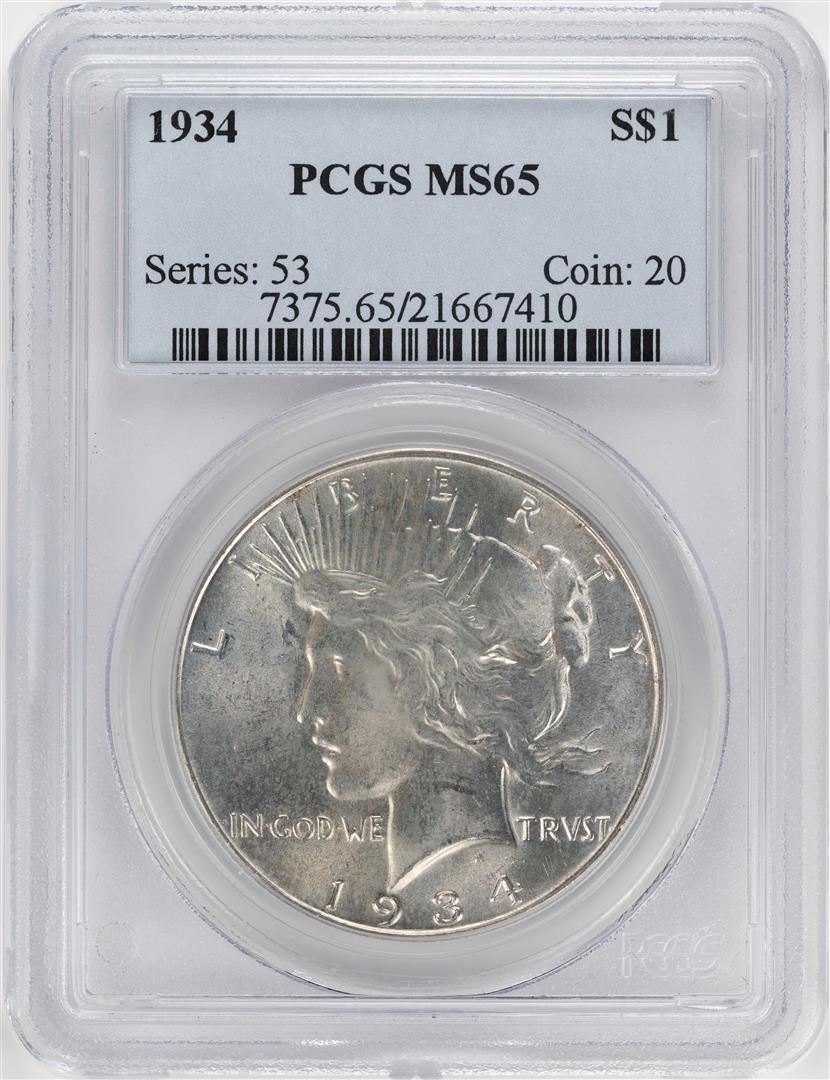 One 1934 $1 Peace Silver Dollar Coin PCGS MS65. PCGS Graded.