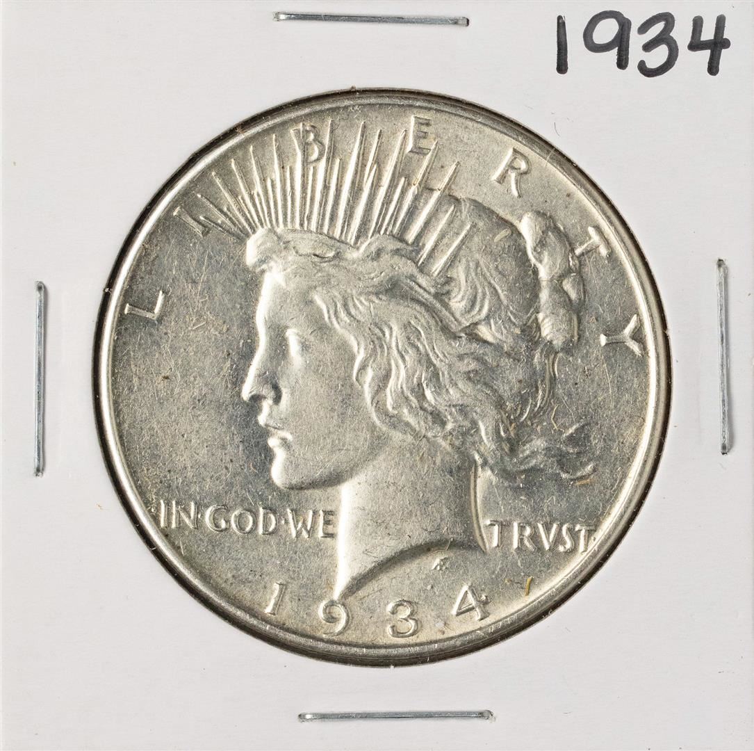 One 1934 $1 Peace Silver Dollar Coin.