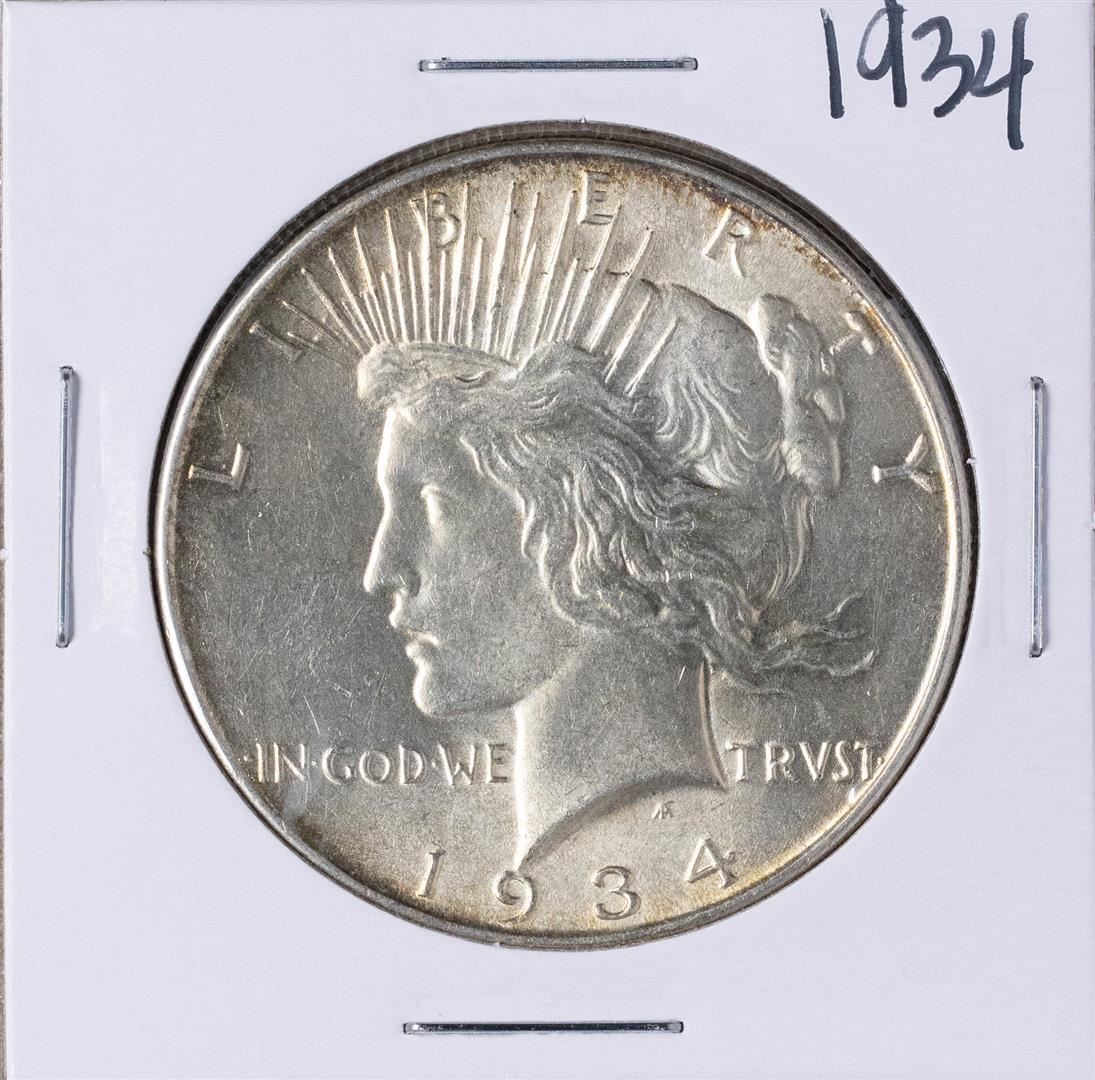 One 1934 $1 Peace Silver Dollar Coin.