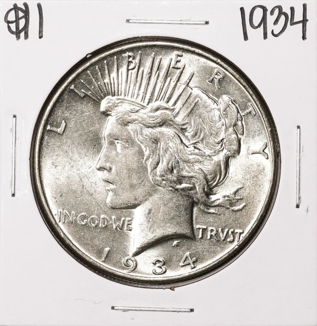 One 1934 $1 Peace Silver Dollar Coin.