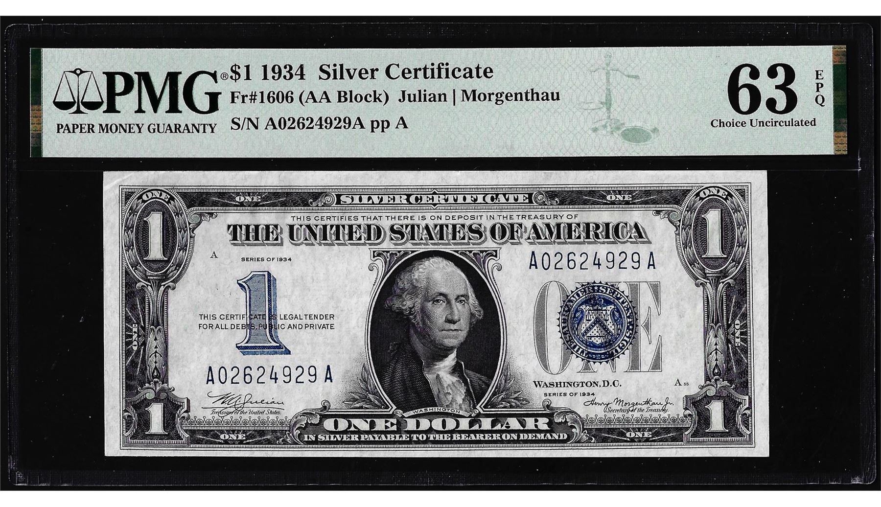 1934 $1 Silver Certificate Note Fr.1606 PMG Choice Uncirculated 63EPQ