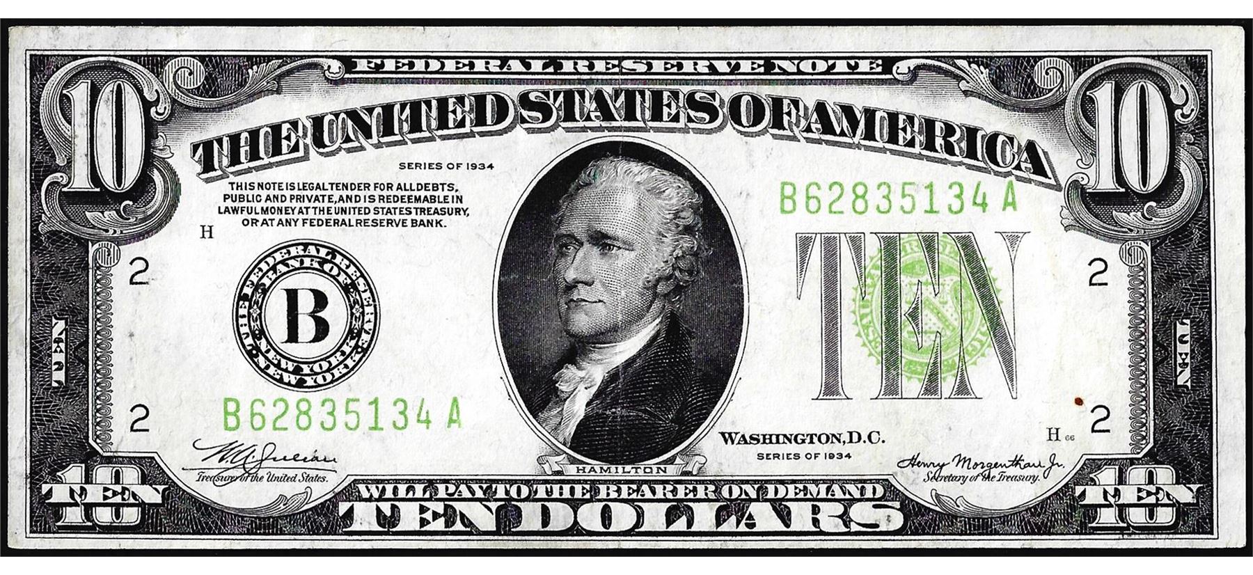 1934 $10 Federal Reserve Note New York