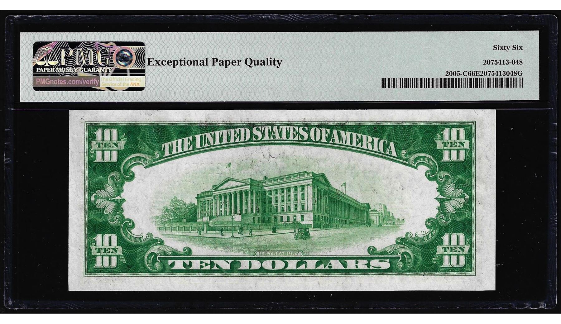 1934 $10 Federal Reserve Note Philadelphia Fr.2005-C PMG Gem Uncirculated 66EPQ