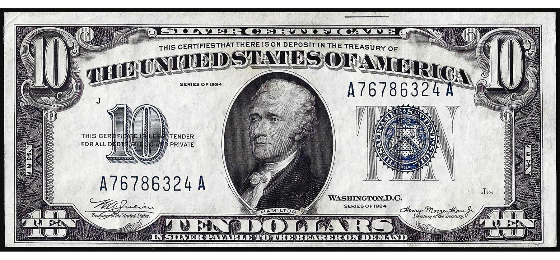 One 1934 $10 Silver Certificate Note.