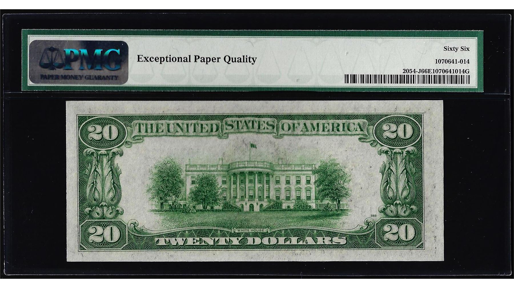 1934 $20 Federal Reserve Note Kansas City Fr.2054-J Mule PMG Gem Uncirculated 66EPQ