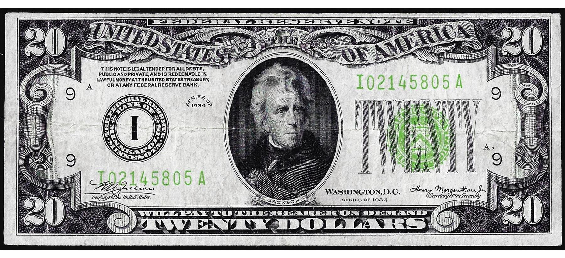 One 1934 $20 Federal Reserve Note Minneapolis.