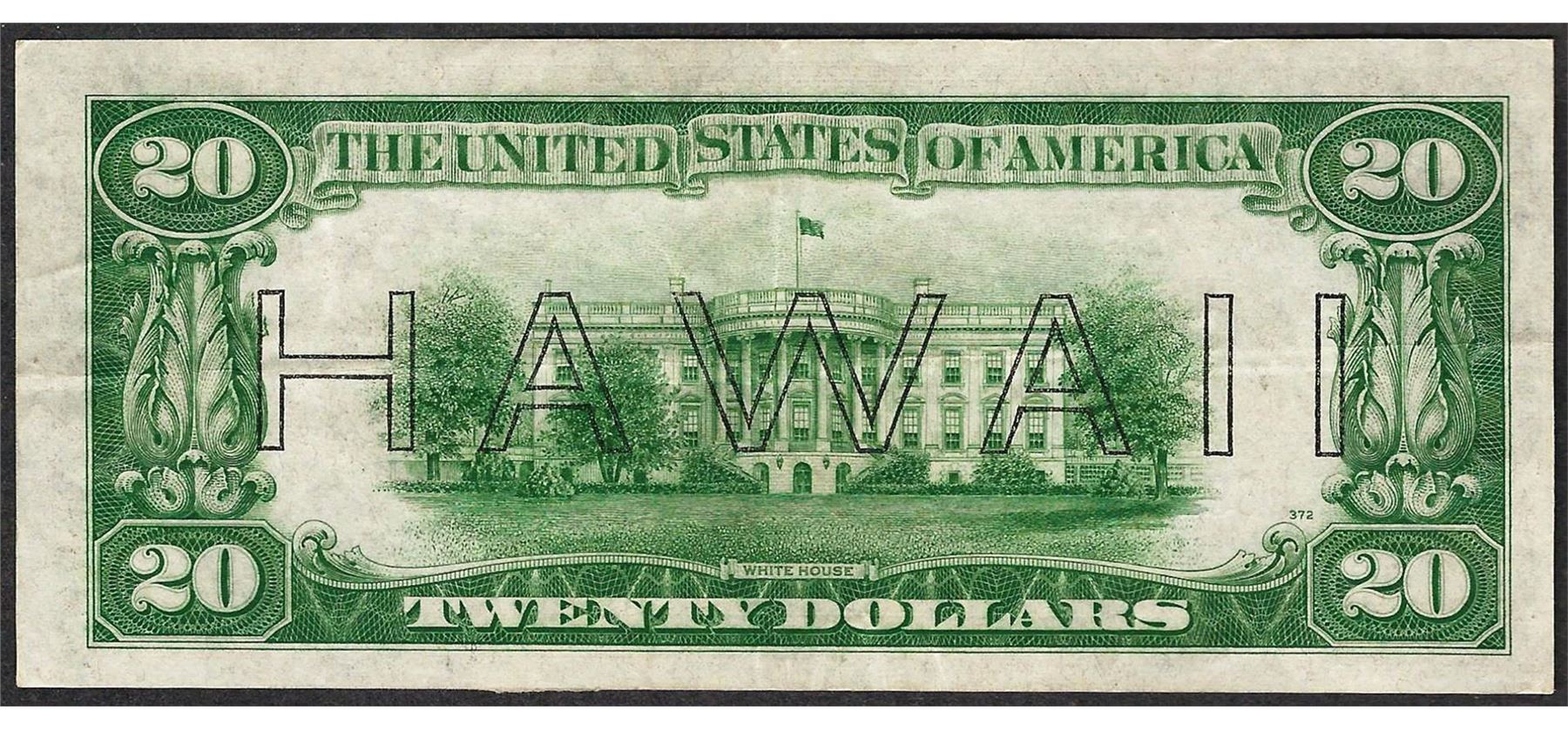 One 1934 $20 Hawaii Federal Reserve Note WWII Emergency Note.