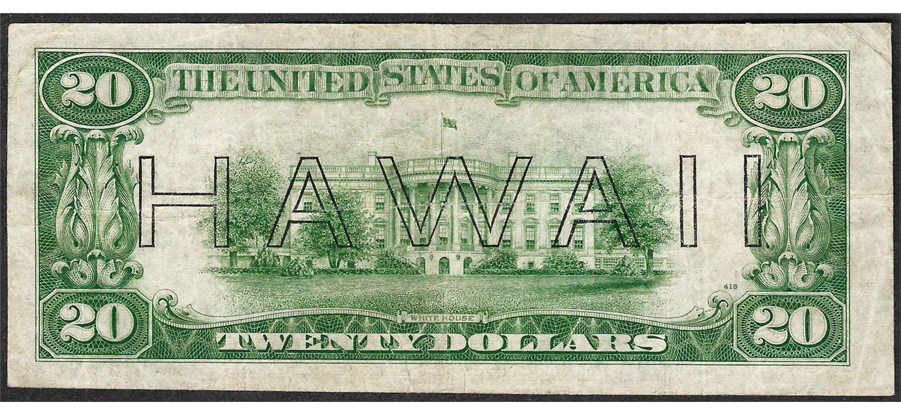 One 1934 $20 Hawaii Federal Reserve Note WWII Emergency Note.