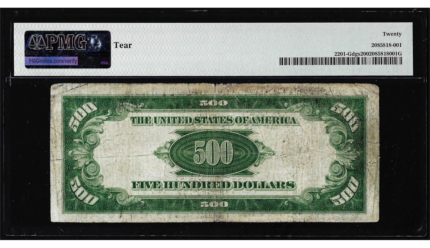 One 1934 $500 Federal Reserve Note Chicago Fr.2201-G PMG Very Fine 20. PMG Certified.