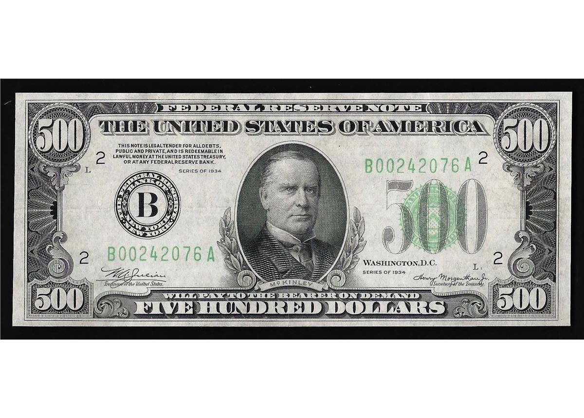 One 1934 $500 Federal Reserve Note New York.