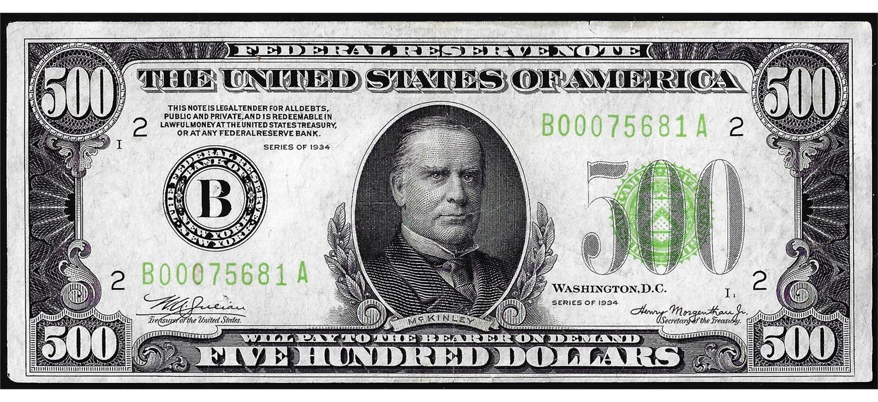 One 1934 $500 Federal Reserve Note New York.
