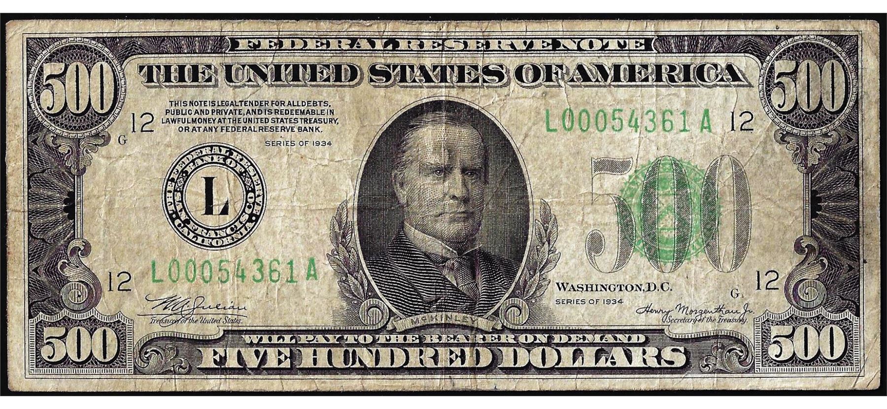 One 1934 $500 Federal Reserve Note San Francisco.