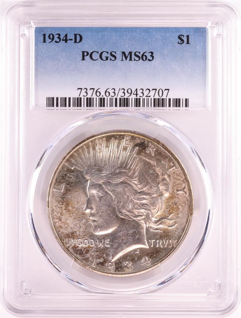 One 1934-D $1 Peace Silver Dollar Coin PCGS MS63. PCGS Graded.