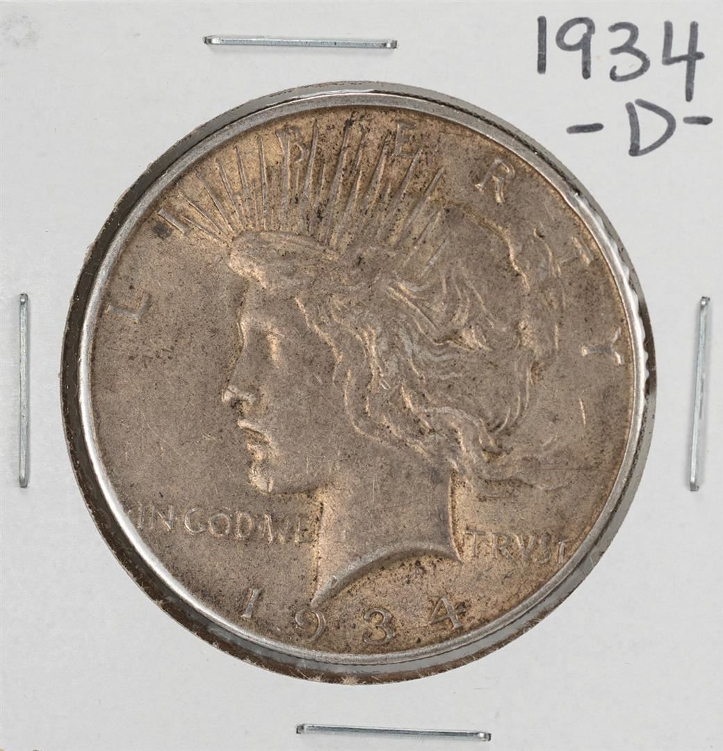 One 1934-D $1 Peace Silver Dollar Coin.