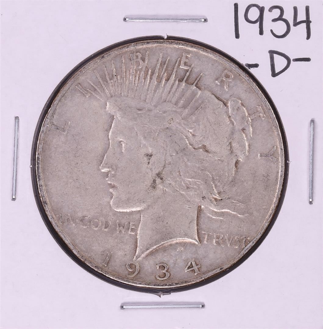 One 1934-D $1 Peace Silver Dollar Coin.