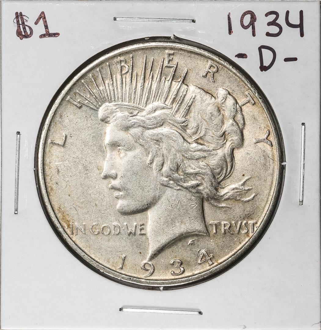 One 1934-D $1 Peace Silver Dollar Coin.