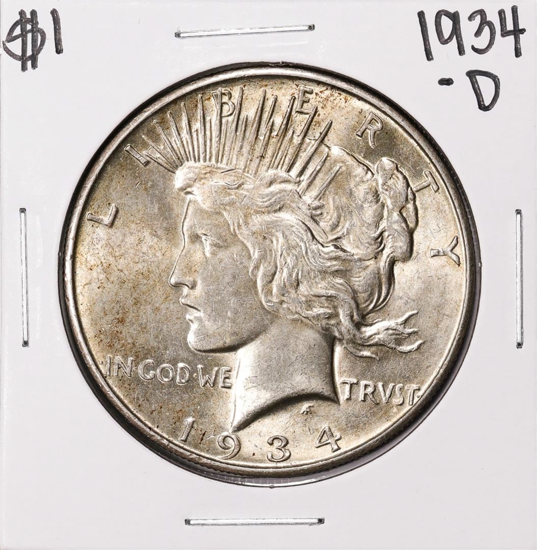 One 1934-D $1 Peace Silver Dollar Coin.