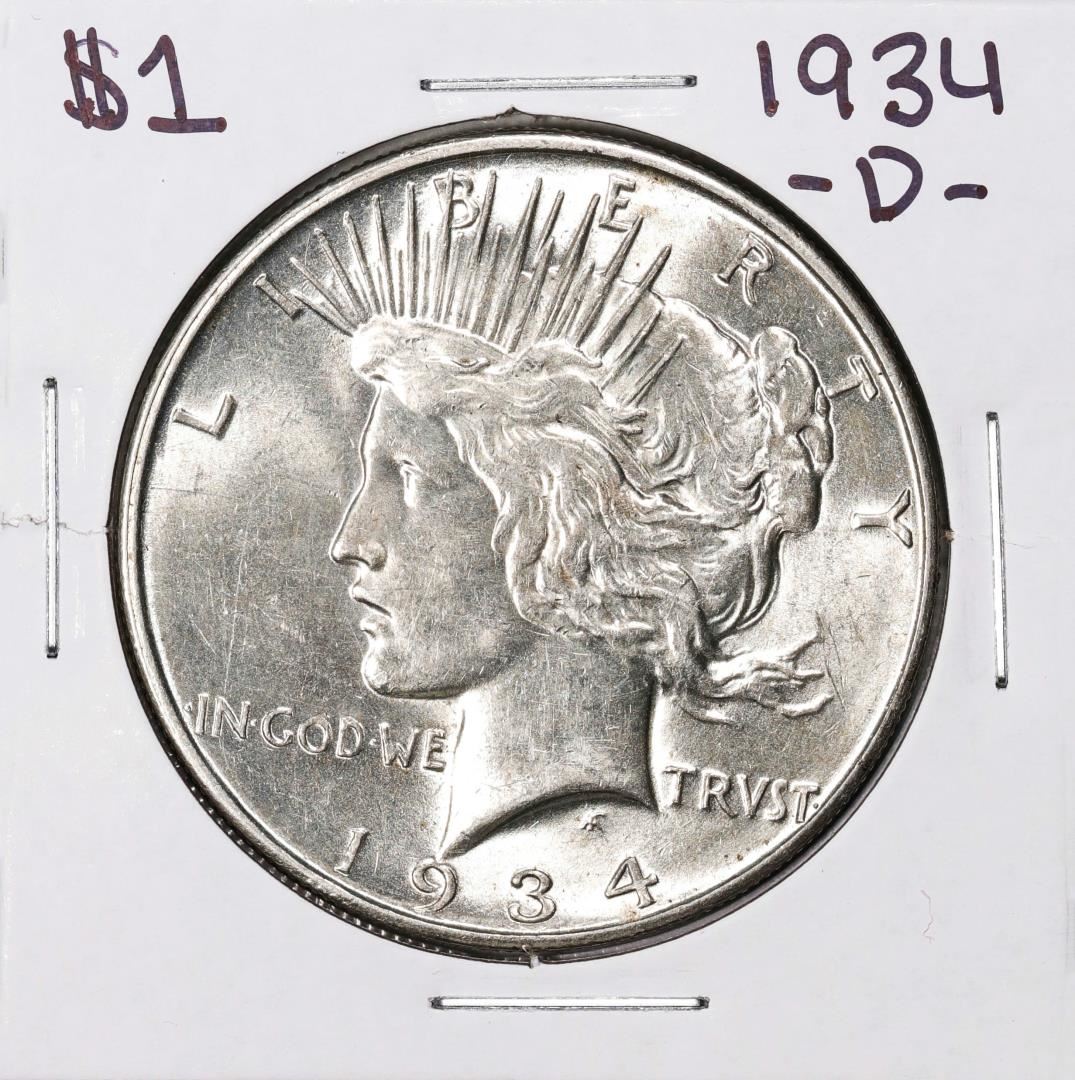 One 1934-D $1 Peace Silver Dollar Coin.