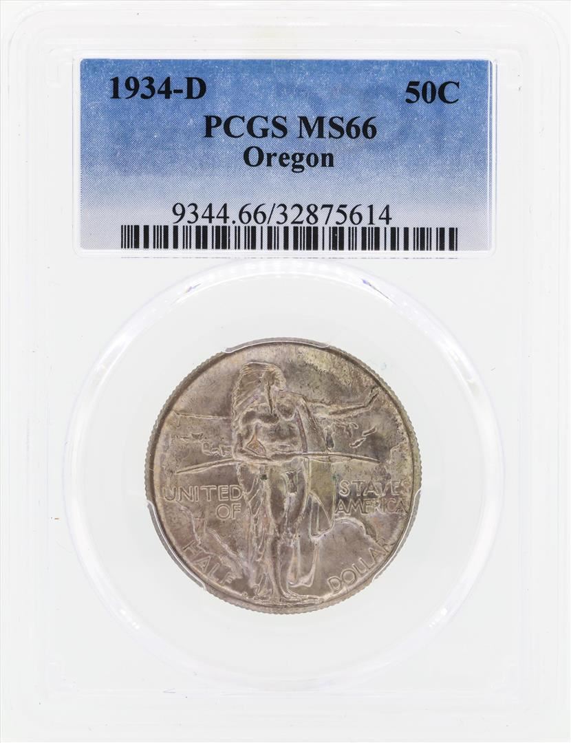One 1934-D Oregon Commemorative Half Dollar Coin PCGS MS66. PCGS Graded.