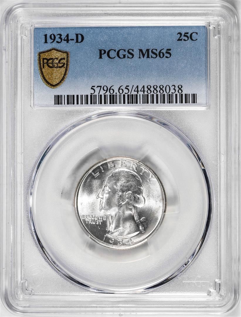 One 1934-D Washington Quarter Coin PCGS MS65. PCGS Graded.