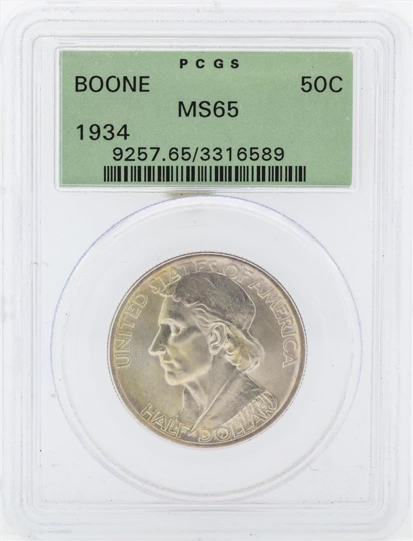 One 1934 Daniel Boone Bicentennial Commemorative Half Dollar Coin PCGS MS65. PCGS Graded.