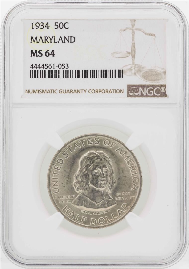 1934 Maryland Tercentenary Commemorative Half Dollar Coin NGC MS64