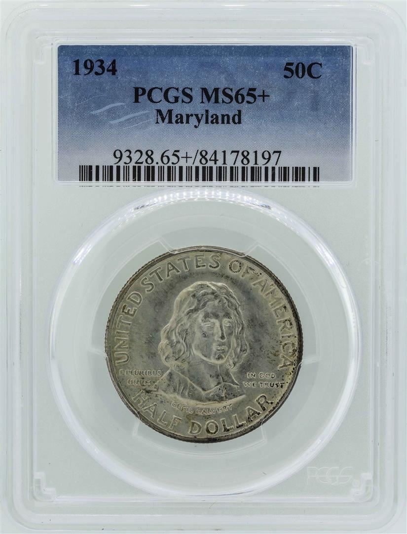 One 1934 Maryland Tercentenary Commemorative Half Dollar Coin PCGS MS65+. PCGS Graded.
