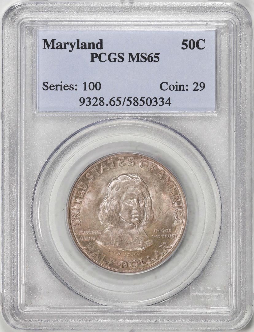 One 1934 Maryland Tercentenary Commemorative Half Dollar Coin PCGS MS65. PCGS Graded.