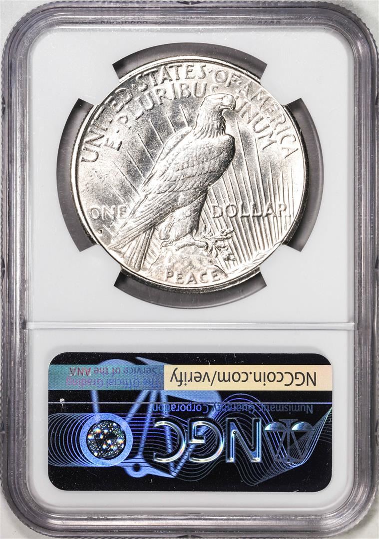 One 1934-S $1 Peace Silver Dollar Coin NGC Uncirculated Details, please note there is a small chip to the holder as shown in the pictures included with this lot. NGC Certified.