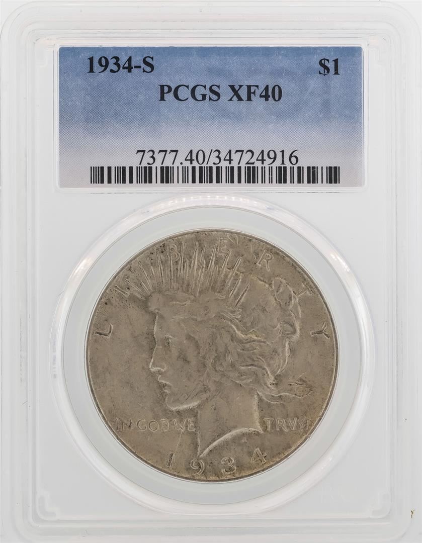 One 1934-S $1 Peace Silver Dollar Coin PCGS XF40. PCGS Graded.
