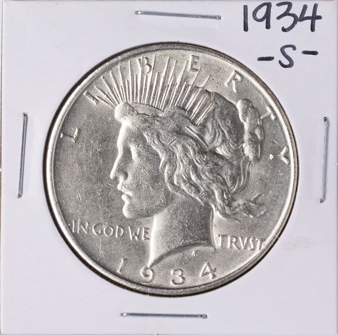 One 1934-S $1 Peace Silver Dollar Coin.