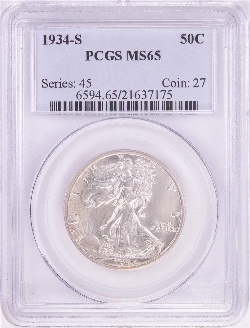 One 1934-S Walking Liberty Half Dollar Coin PCGS MS65. PCGS Graded.