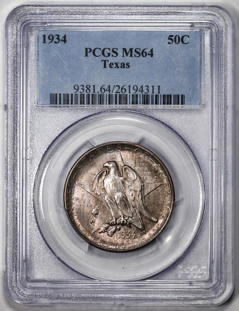 1934 Texas Commemorative Half Dollar Coin PCGS MS64