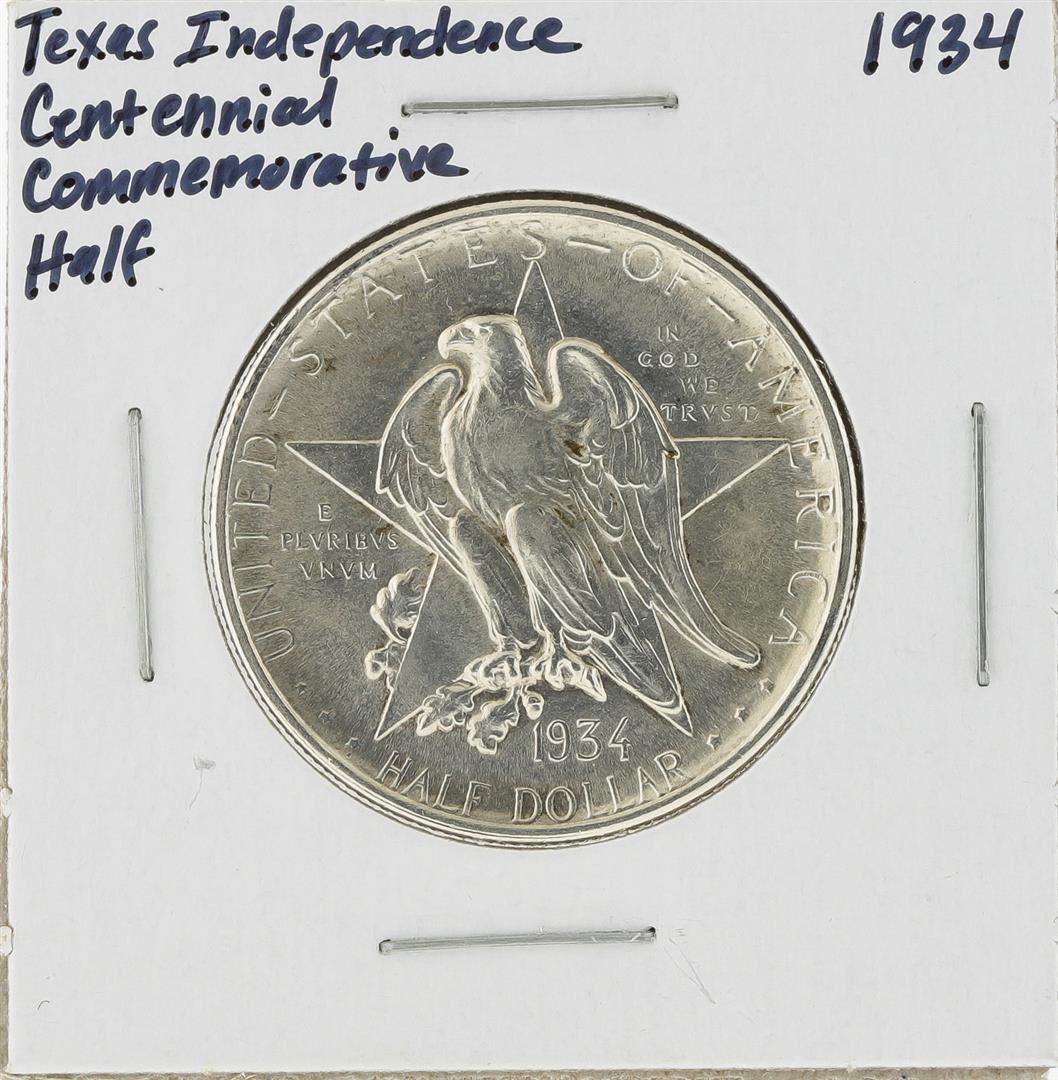 One 1934 Texas Independence Centennial Commemorative Half Dollar Coin.