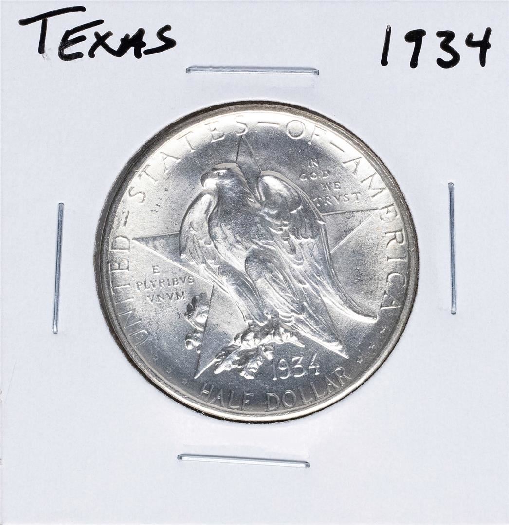 One 1934 Texas Independence Centennial Commemorative Half Dollar Coin.