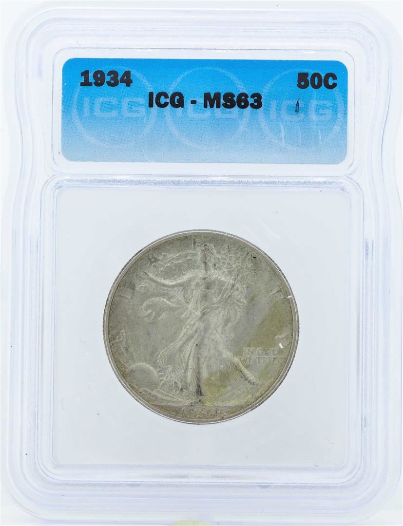 One 1934 Walking Liberty Half Dollar Coin ICG MS63. ICG Certified.