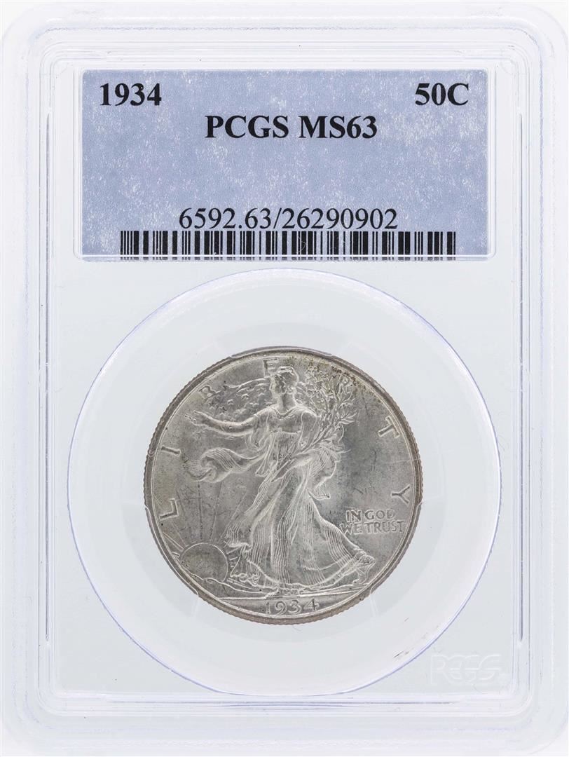 One 1934 Walking Liberty Half Dollar PCGS MS63. PCGS Graded.