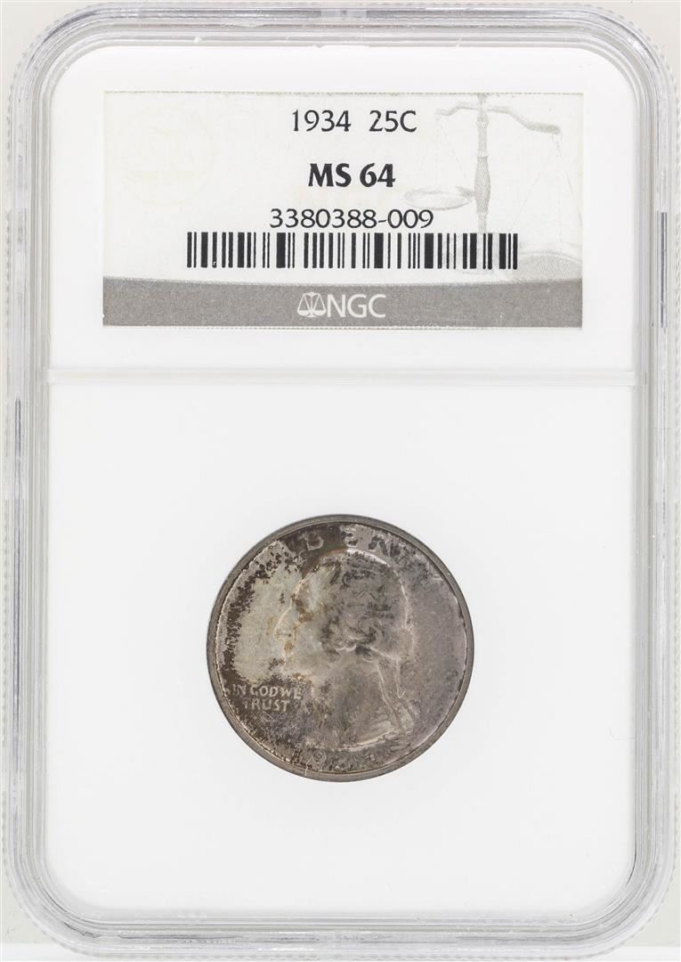 One 1934 Washington Quarter Coin NGC MS64. NGC Certified.