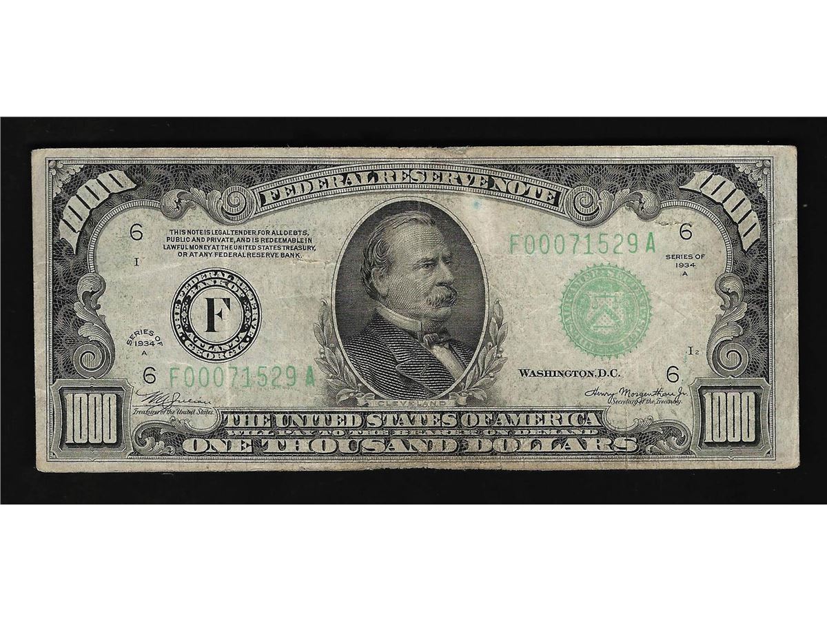 One 1934A $1,000 Federal Reserve Note Atlanta.