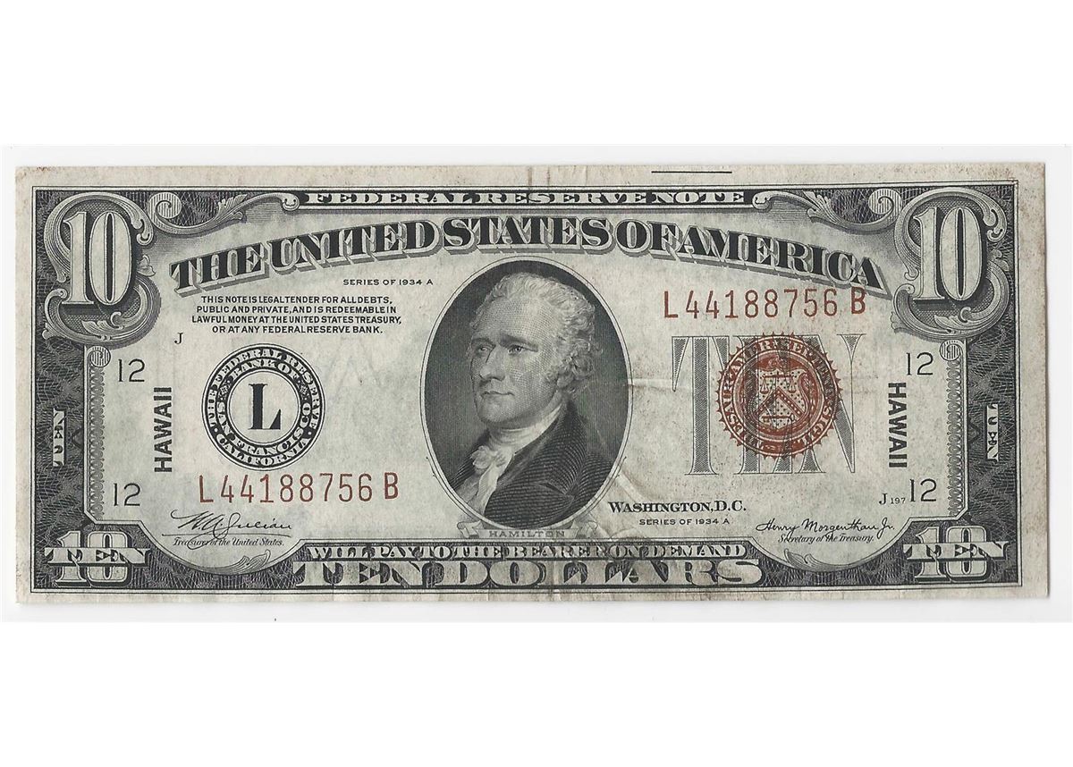 One 1934A $10 Federal Reserve Emergency Hawaii Note.