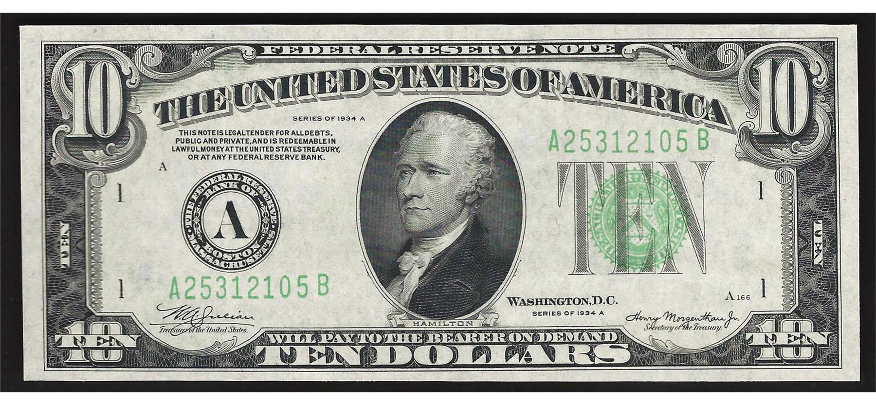 One 1934A $10 Federal Reserve Note.