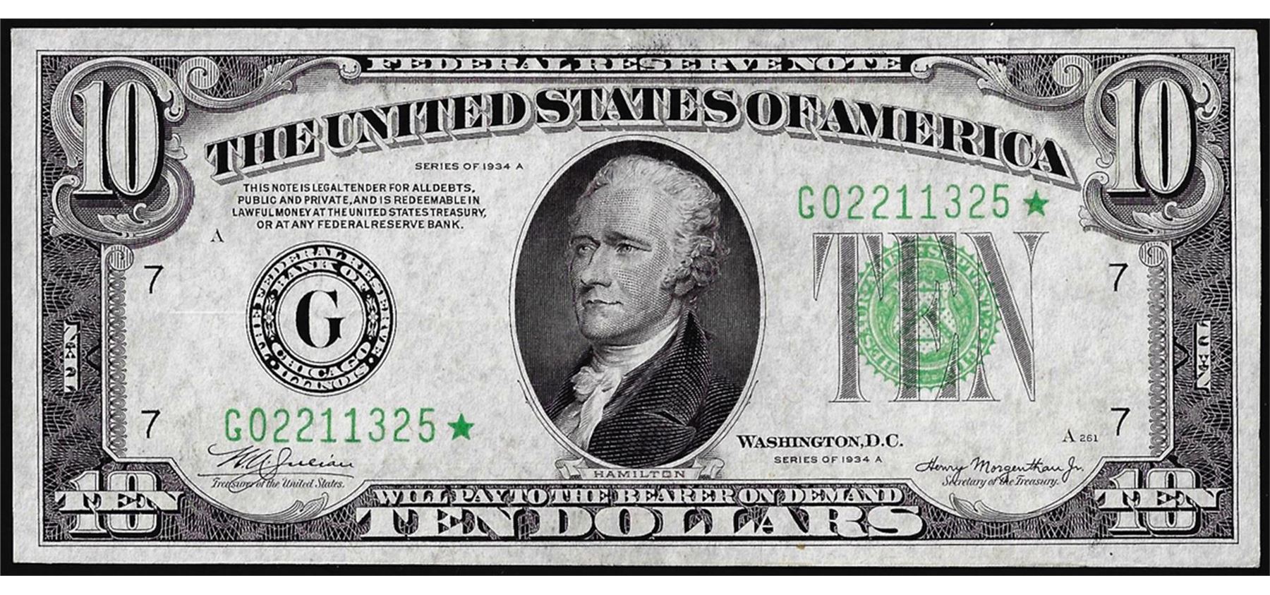 One 1934A $10 Federal Reserve STAR Note Chicago.