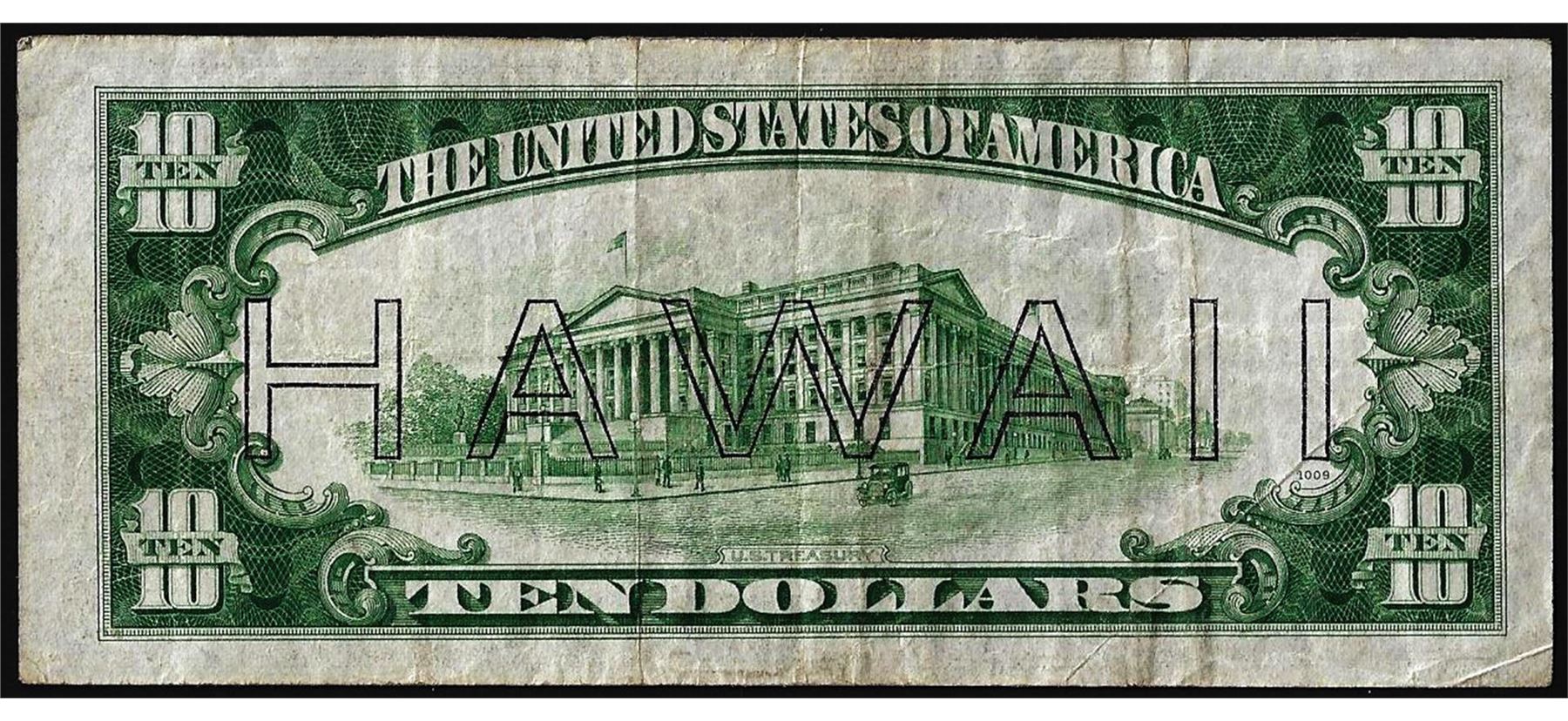 One 1934A $10 Hawaii WWII Emergency Issue Federal Reserve Note.