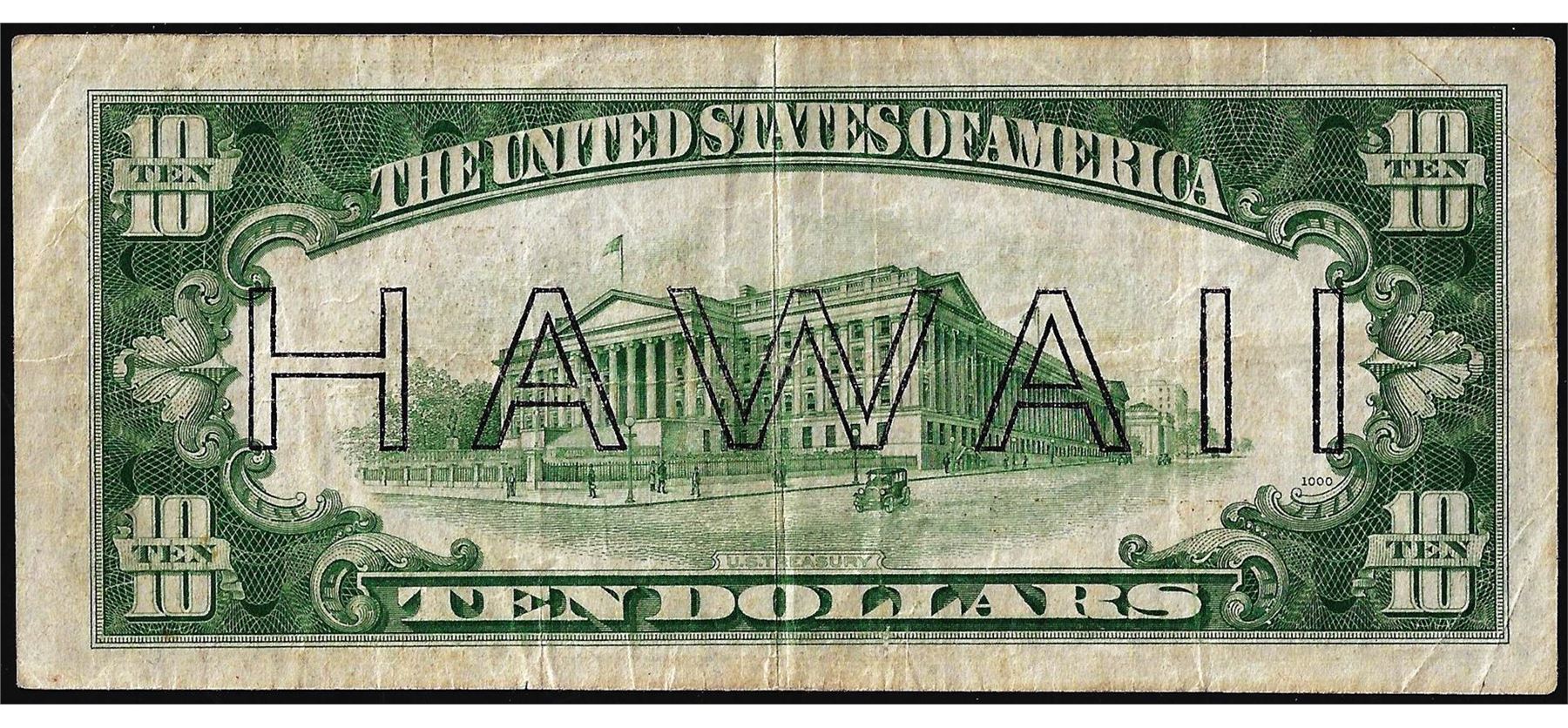 One 1934A $10 Hawaii WWII Emergency Issue Federal Reserve Note.