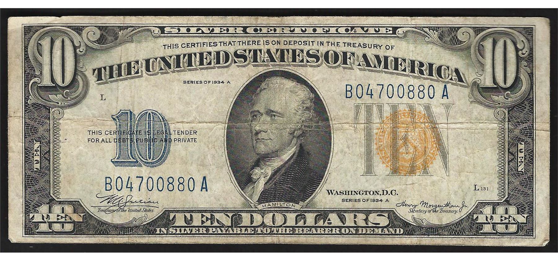 1934A $10 North Africa Silver Certificate WWII Emergency Note