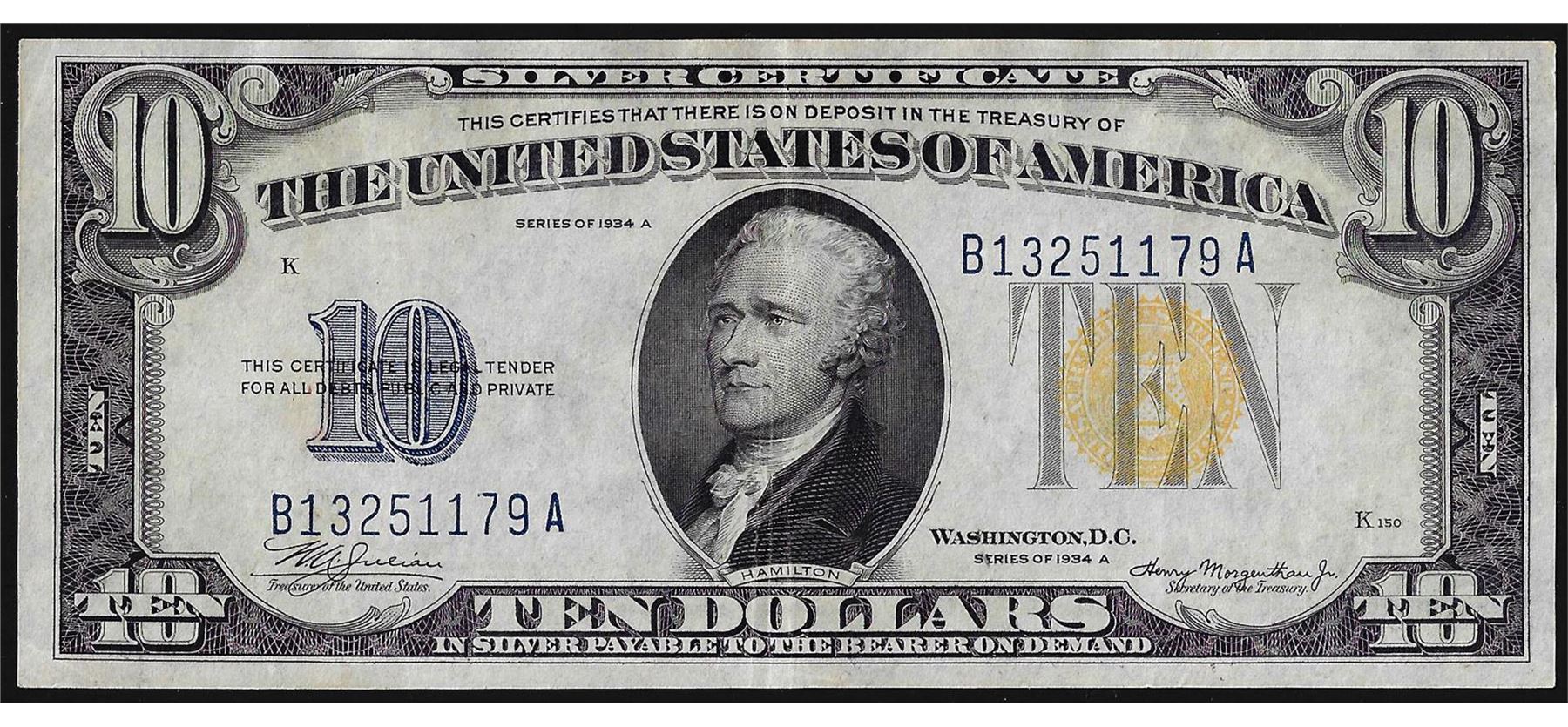 One 1934A $10 North Africa Silver Certificate WWII Emergency Note.