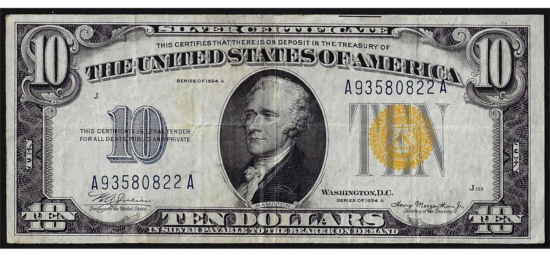 One 1934A $10 North Africa Silver Certificate WWII Emergency Note.
